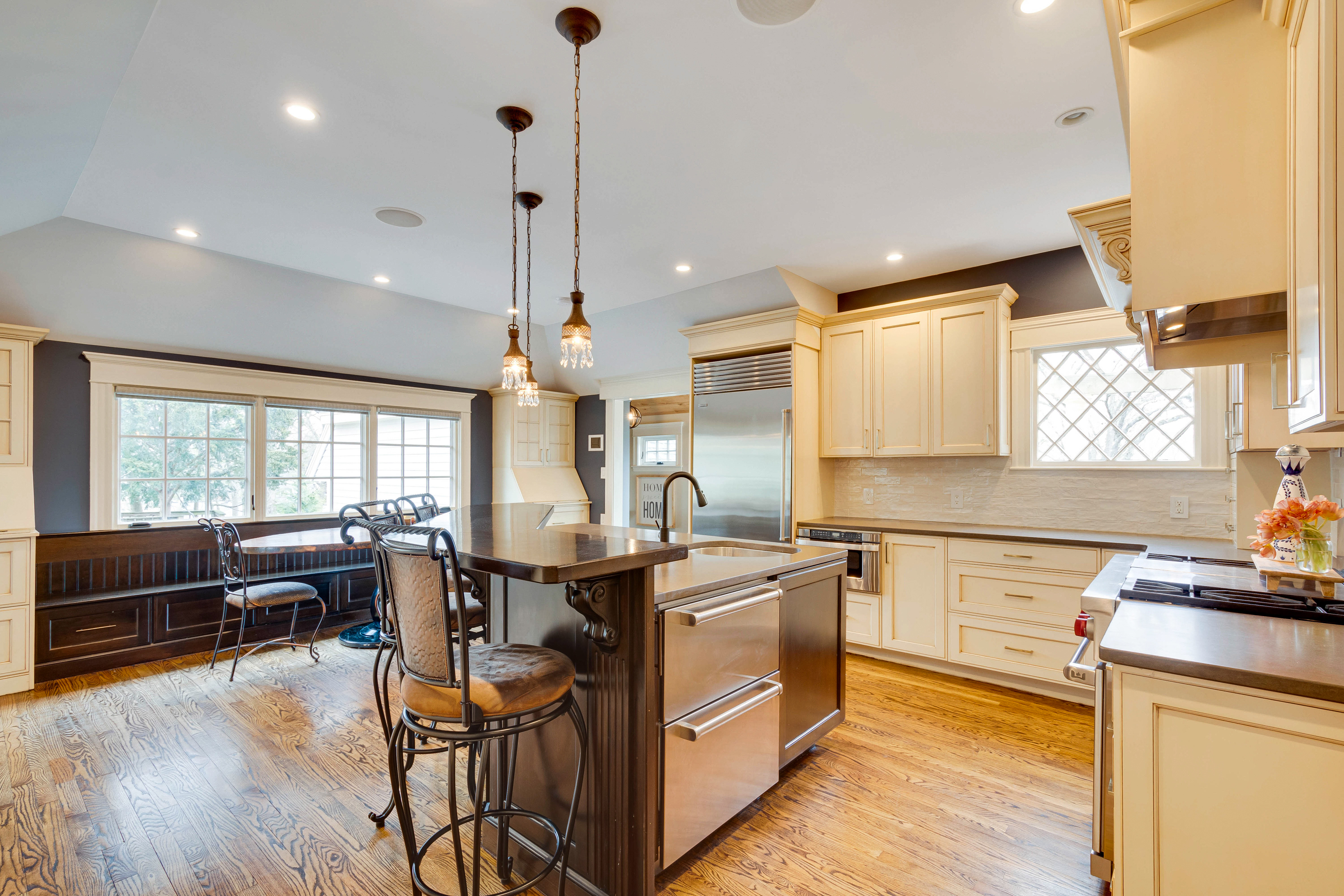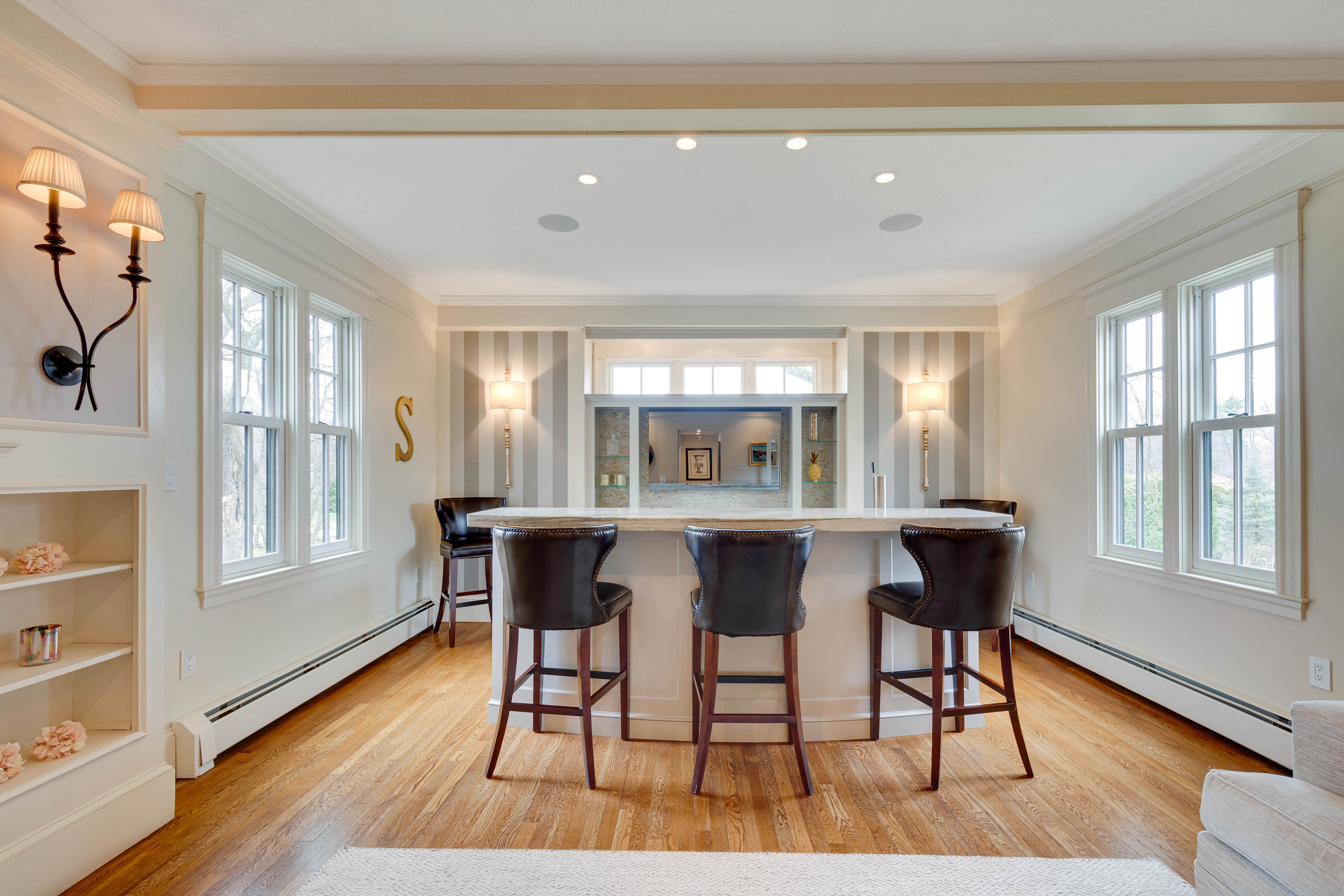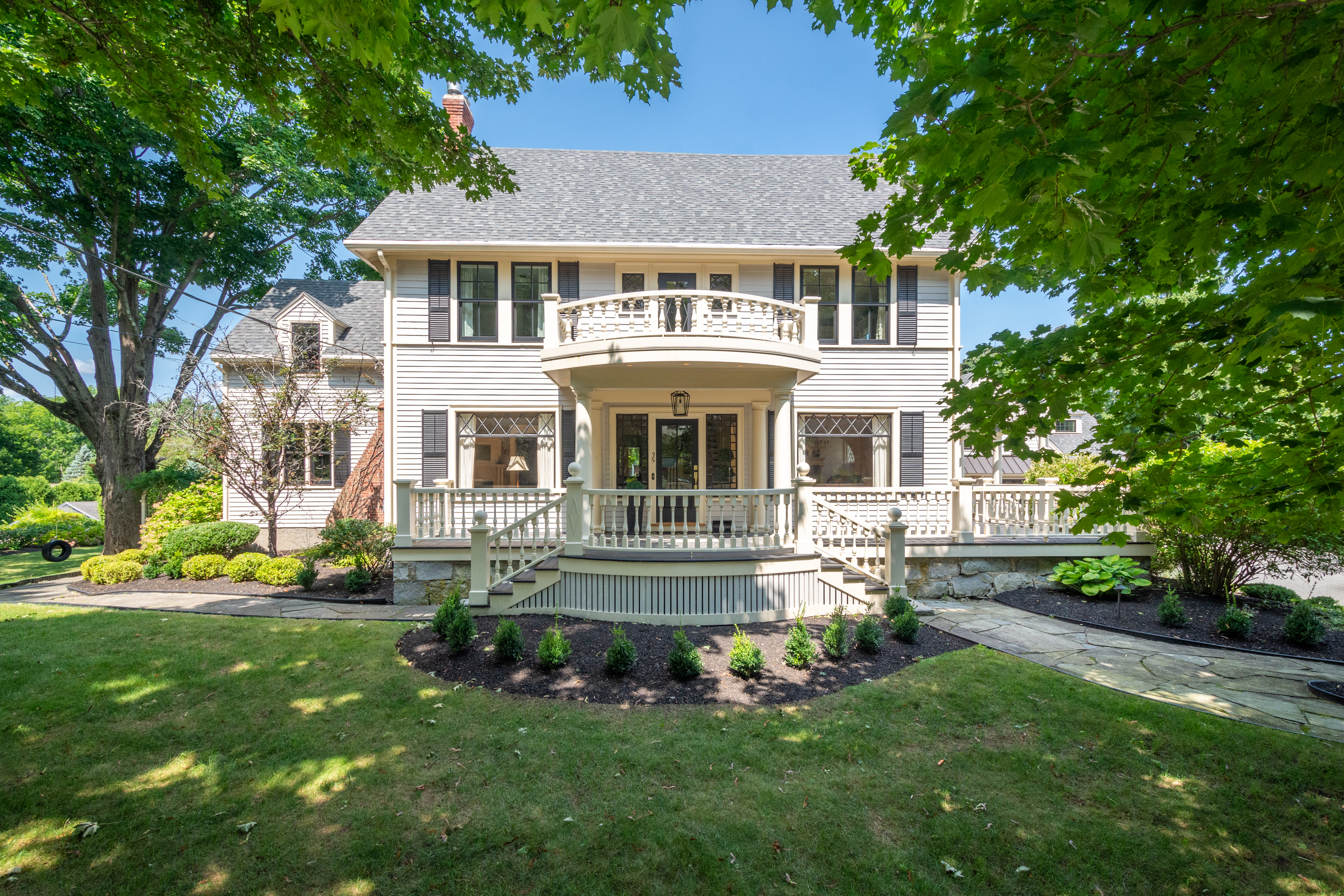 This exceptional home located at the top of Reading's West Side invites you to immerse yourself in complete luxury. The lush yard is thoughtfully designed for privacy and endless gathering spaces. Throughout the expansive main level there are gorgeous entertaining areas that seamlessly flow together to accommodate versatility.  Appointed with 5 spacious bedrooms and 5 refined baths this home defines a serene setting for a growing family.  The lower level shares endless bonus space featuring a family room, game room and study area. It doesn't end here, for the fitness enthusiast, the stunning gym is adorned with reclaimed barn wood, a spa-like bath and private office. Timeless craftmanship, restored architecture with modern amenities, this home is extraordinary. Conveniently located close to schools and downtown Reading, 35 Scotland Road captures the essence of tranquility with an elegant level of living.